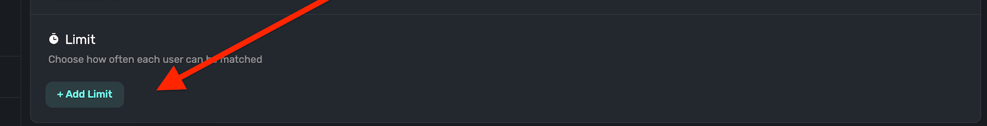 This is useful if you want to limit how many times a user can match with the audience. You can choose how many times the limit should be placed, along with a time duration and time span. For example: 1 (times) every 60 (time duration) minutes (time span):